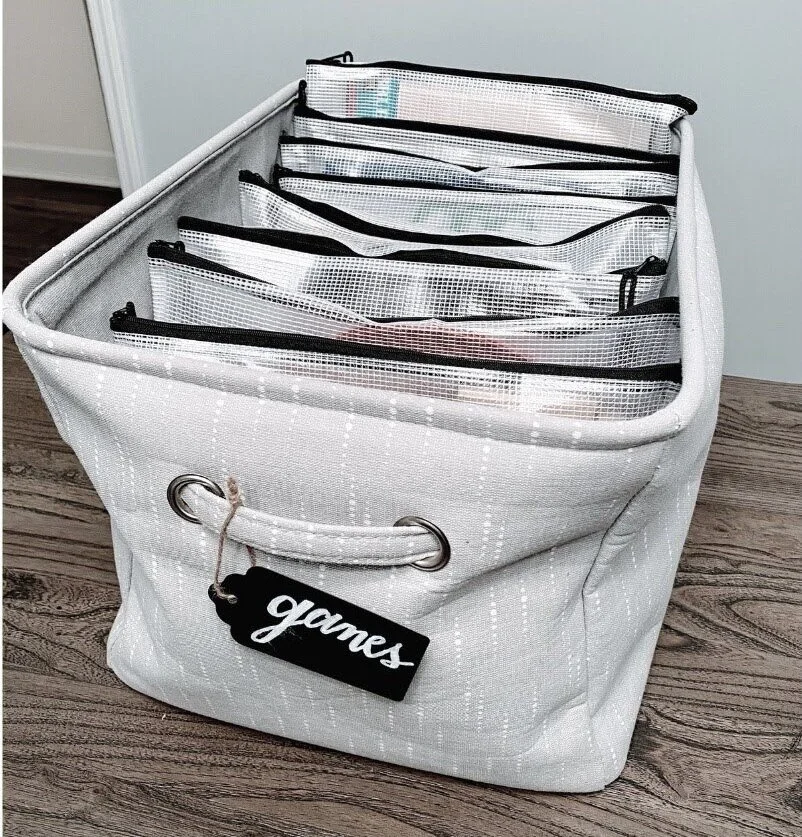 Gather together all your board games, puzzles and card games that you want to transfer to zipped bags so you can count and measure them!